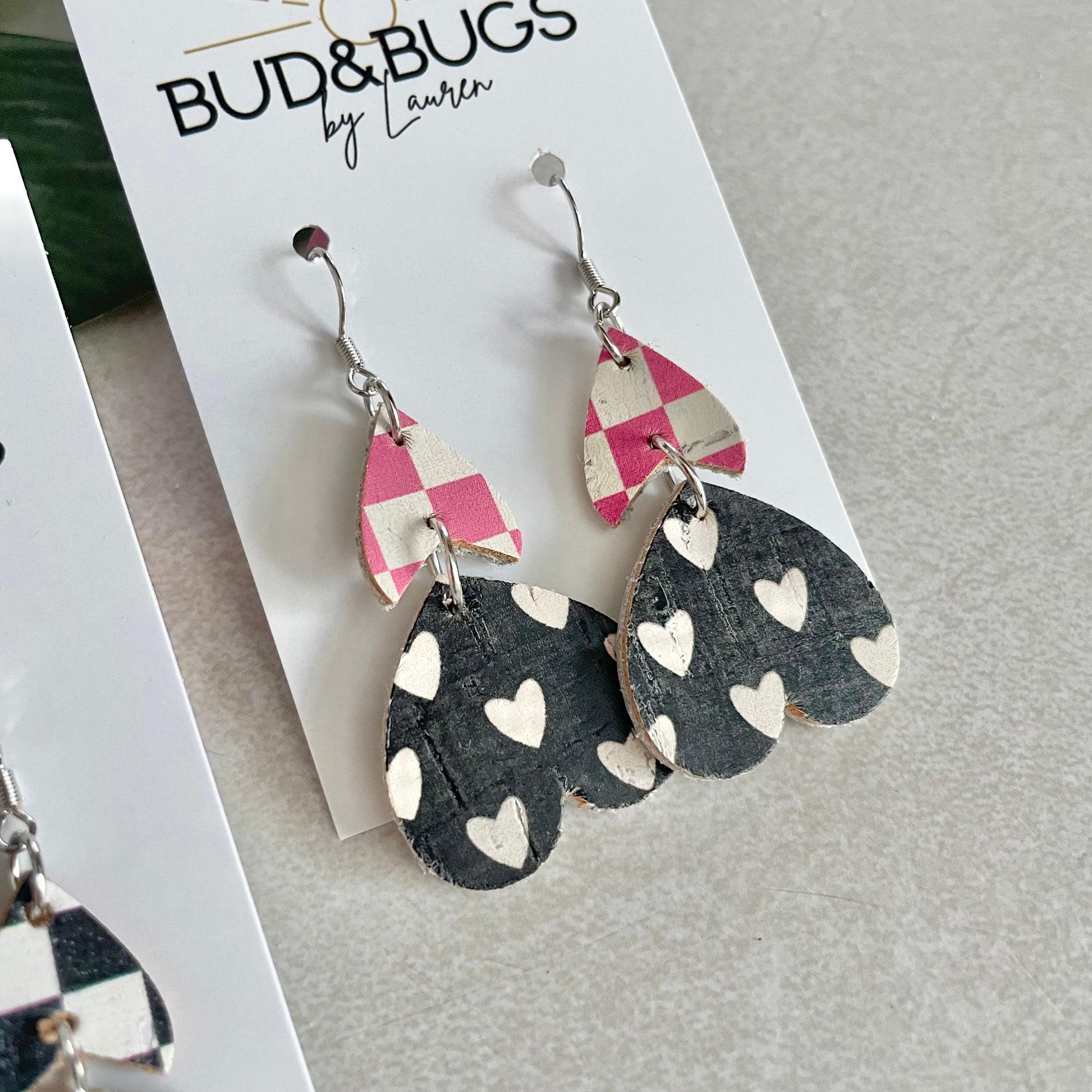 Handcrafted cork fabric on genuine leather earrings; lightweight, nickel free and hypoallergenic.